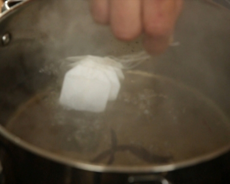 Съдът се дърпа от котлона, в него се пускат пакетчетата чай. Похлупва се и се оставя чаят да се запари.