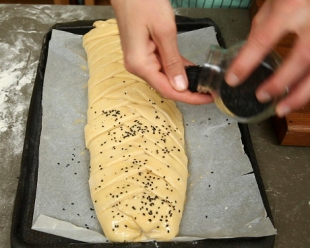02.06.2019 Доста голямо руло се получи. Едва го събрах в тавата. :) В моя случай 25 минути се оказаха недостатъчно за изпичане на рулото и пекох поне още 10 минути.