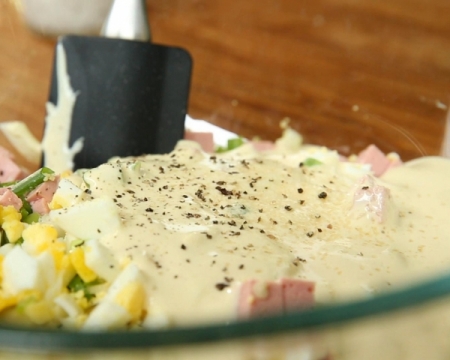 Салата с боб, царевица, авокадо и кренвирши