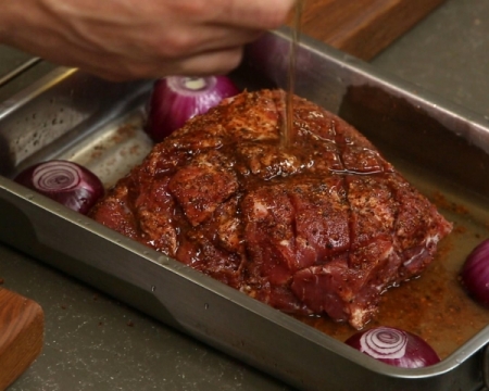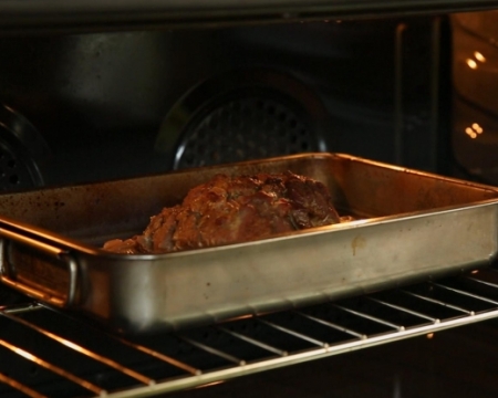 17.01.2018 Пекох месото 5 часа, без да махам фолиото, на 150 градуса и си беше хванало хрупкава коричка, а отвътре беше божествено меко. Страхотна рецепта !