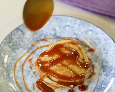Сервирайте палачинките, залети със соса.